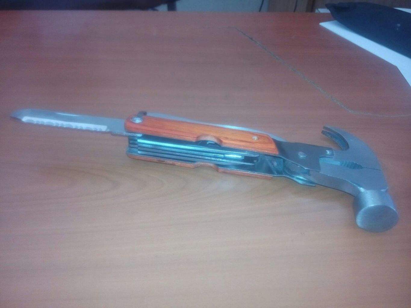 Its 8 in 1 Multipurpose Tool. Consist of: Hammer, Pliers, Cutter, Knife, and Wood saw, Bread knife, Screw driver, opener & carry bag.